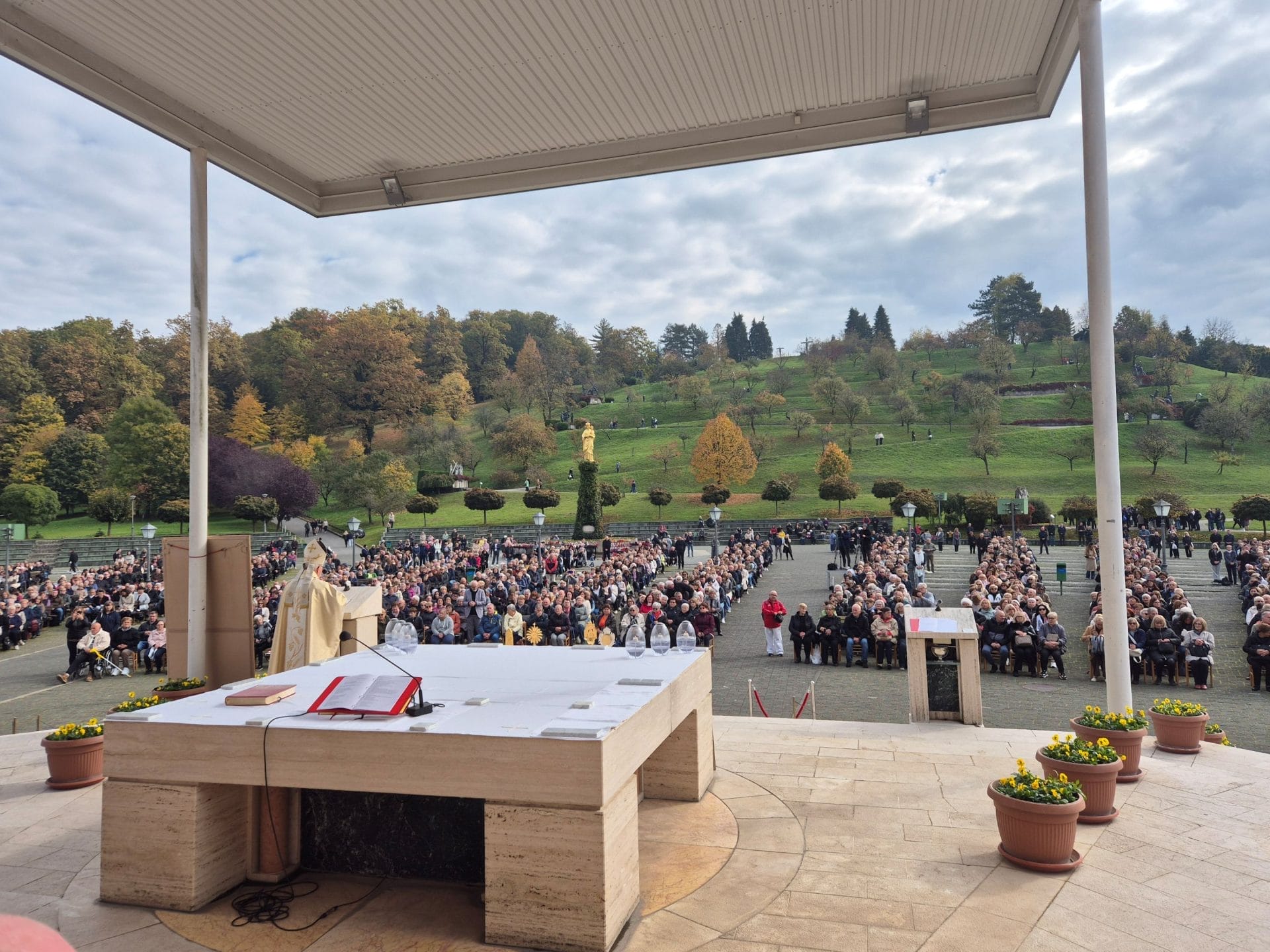 Štovatelji Božjeg milosrđa iz naše župe, predvođeni župnikom don Ivanom, 18. listopada 2025. godine, pohodili smo svetište Majke Božje u Mariji Bistrici, gdje se održao 12. nacionalni susret štovatelja Božjeg milosrđa. Krenuli smo ujutro rano. Hodočašće uvijek započnemo molitvom i blagoslovom. Tako je bilo i ovaj put, te smo uz Božju pomoć, putovali sigurno i sretno te stigli na vrijeme. U autobusu, don Ivan nam je rekao kako će sv. misu predslaviti banjolučki biskup u miru, monsinjor Franjo Komarica. Don Ivan je o biskupu govorio s velikom dozom poštovanaja i veličanja njega kao čovjeka koji je, zajedno sa svojim vjernicima, u posljednjem ratu u BiH proživio svojevrsnu Kalvariju. Točno u 11 sati pjesmama koje slave Majku Božju, u izvođenju zbora konkatedrale župe svetog Petra i Pavla iz Osijeka i nazočnog mnogobrojnog puka, počelo je svečano misno slavlje. U procesiji su izlazili svećenici, mladići i djevojke u narodnim nošnjama noseći zastave, slike i relikvije svetaca na poseban način štovatelja Božjeg milosrđa. Posebno nas je obradovao biskup koji je nasmijanog lica pozdravljao vjernike. Na licu mu se ocrtavala velika radost što nas vidi u tako velikom broju. A radost je bila obostrana, preslikala se s njegovog lica na naša. Čuvar nacionalnog, svetišta preč. Tomica Šestak, u uvodnoj riječi pozdravio je sve hodočasnike iz 34 župe iz Hrvatske, BIH te jednu iz susjedne Slovenije, a onda je zamolio biskupa Franju Komaricu da počne sa misnim slavljem. Nakon pozdrava riječima „Mir s vama“, biskup se zahvalio Gospodinu što mu je uslišao molitvu i dopustio da ustane iz bolesničke postelje, da može biti s nama i predvoditi ovo slavlje. Nazvao nas je hodočasnicima nade, svjedocima i promicateljima Božjeg milosrđa. Također je istaknuo da, radost koju vidi na našim licima je proizvod naše vjere, vjere da je Isus došao zbog nas. „Grešni jesmo, ali uz pomoć njegovog milosrđa oslobodit ćemo se“ rekao je biskup. Kako su velike i ohrabrujuće ove riječi?! Dok je govorio toplim, biranim riječima, osmijeh je titra na njegovom licu. Govorio je o tome kako Gospodin odabire duše, a jedna od odabranih duša je sveta Faustina Kowalska, poljska katolička svetica koja je više puta imala ukazanja Isusa, o čemu je pisala u svom Dnevniku. U ovoj svetoj jubilarnoj godini slavimo 120 godina od rođenja svete Faustine Kowalske i 25 godina od kako ju je, danas sveti, Papa Ivan Pavao II proglasio sveticom. Naglasio je kako moramo biti svjesni da cilj našeg životnog puta, našeg hodočašća je u antifoni „Zahvaljujte Gospodinu jer je dobar, jer je vječna ljubav njegova“. Bogu moramo stalno zahvaljivati za dar našeg zajedništva s njim, zajedništva s ljudima, sa crkvom i sa svecima, a kao nit vodilja kroz ovo hodočašće kroz život da nam bude ljubav. Nikad u životu nisam čula dužu propovijed a da mi u nijednom trenutku misao nije odlutala ili da mi je nečega bilo previše. Bilo je ovo prekrasno misno slavlje. Osim što je biskup imao lijepu, nadahnutu propovijed, od početka do kraja mise iz njegovog se čistog i melodičnog glasa orila pjesma i hvala Gospodinu. Nahranjeni tijelom Gospodina našeg Isusa Krista, i nakon što je biskup blagoslovio hodočasnike, imali smo priliku dotaknuti relikvije svete Faustine Kowalske, svetog Ivana Pavla II., blaženog Alojzija Stepinca i blaženog Mihaela Sopoćka, katoličkog svećenika, koji je bio ispovjednik svete Faustine Kowalske. Na kraju misnog slavlja riječi zahvale uputio je koordinator Koordinacije štovatelja Božjega milosrđa o. Andrzej Wósko SCJ. Biskup Franjo Komarica svoju snagu darovanu od Boga i Duha svetoga, posvjedočio predvođenjem Križnog puta, predvođenjem zajedničke krunice Božjeg milosrđa i blagoslovom nabožnih predmeta. Iz tisuća glasova orile su se pjesme Zdravo Djevo Kraljice Hrvata i Majko Božja Bistrička, a opet je dominirao predivan, čist glas našeg biskupa. Zahvalni Majci Božjoj što nas je pratila na našem hodočašću i našem don Ivanu koji je kao dobar pastir uz sve ostale obveze izdvojio ovaj dan da bude s nama kao naš duhovni vođa. Sretni i ispunjeni Duhom Presvetim, vratili smo se doma. Bože, hvala ti! Milosrdni Isuse, hvala ti! Majko Božja, hvala ti!