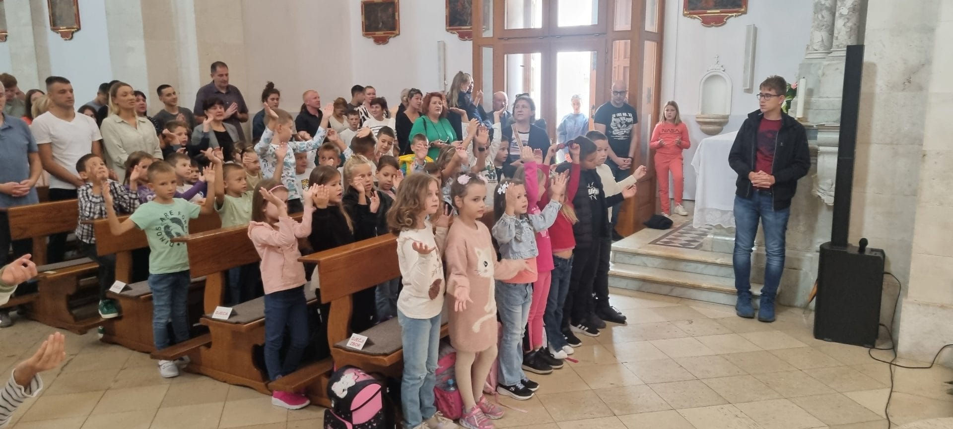 Zaziv Duha Svetoga te blagoslov prvaša i školskih torbi na početku školske godine tradicionalan je događaj u našoj župi kao i u mnogim drugim župama. To radosno slavlje imali smo u našoj crkvi danas 15. rujna. Na koncu slavlja sv. mise u 10 sati zazvali smo dolazak Duha Svetoga. Prije samog zaziva Duha Svetoga bila je posebno izrečena molitva vjernika te prinos darova. U molitvi vjernika se između ostalog molilo i za radost pohađanja nastave, uspjeh u školi te sve njezine djelatnike. Slavlje su pjesmom uzveličala djeca pod vodstvom č.s. Marinele. Na euharistijskom slavlju u 11:30 bio je, već spomenuti, blagoslov prvaša i školskih torbi. Iz cjelodnevne bezbrižne igre s obitelji i vrtićkim prijateljima prijeći u školske klupe nije lako – velike su to promjene u životima mališana. Stižu prve obveze u obliku domaćih radova, ali one se obavljaju lako kad su tu olovke, pernice i torbe s likovima iz omiljenih crtanih filmova. A još kad imaju i Božji blagoslov – domaći radovi postaju prava uživancija: zbrajati i oduzimati, pisati velika i mala tiskana i pisana slova nije nikakav problem kad je uz njih Onaj koji ih ljubi najviše na svijetu. Ponekad ipak neće biti sve prelako; poneki matematički zadatci će zahtijevati više vremena, poneka slova ići će možda u krivu stranu, gumica za brisanje će imati posla. Na početku misnog slavlja župnik don Ivan je pozdravio sve nazočne a posebno prvaše i njihove roditelje. U propovijedi tumačeći Isusov upit apostolima: Što vi kažete tko sam ja, don Ivan je pozvao sve okupljene da iskreno u svom srcu odgovore: tko je za nas Isus Krist? Što nam znači? I kad ga trebamo, ako ga uopće trebamo? U nastavku propovijedi govorio je o križu, problemu, razočaranju, nezahvalnosti, bolesti… koju svatko od nas treba preuzeti i s Isusom rješavati. Naglasio je: „S Isusom možemo sve. On nas voli, beskrajno. Želi biti s nama. Toliko toga smo od Isusa dobili da niti svjesni nismo. Najprije veliki je njegov dar, dar na kojem bismo mu trebali bezgranično biti zahvalni dar što smo danas zajedno ovdje. Preko 4000 djece u Hrvatskoj nije moglo krenuti u školu, u prvi razred. Toliko djece je bolesno, a tisuće djece dnevno umire od gladi ili od posljedica neishranjenosti, a mi smo ovdje siti, zdravi i radosni. Zahvalimo Kristu“ pozvao je don Ivan djecu, roditelje i sve okupljene. Po završetku blagoslova svatko je od njih dobio Čoksu, medaljicu s anđelima čuvarima te malu bočicu blagoslovljene vode iz Lurda. Don Ivan je djeci preporučio da Čoksu pojedu, a i što bi drugo s njome, blagoslovljenu vodu stave na radni stol te se prije svakog izlaska iz kuće s njom blagoslove. Dao je i roditeljima zadatak. Oni trebaju medaljicu zašiti na dno torbe ili negdje drugdje gdje je zgodno kako bi je njihova djeca, kod svakog odlaska u školu, imala sa sobom i kako bi ih čuvali anđeli čuvari. Na samom kraju sv. mise 33 prvašića s don Ivanom su se za uspomenu fotografirala. Euharistijsko slavlje, kao i svake nedjelje u 11:30 sati, pjesmom je animirao naš bend Effata.